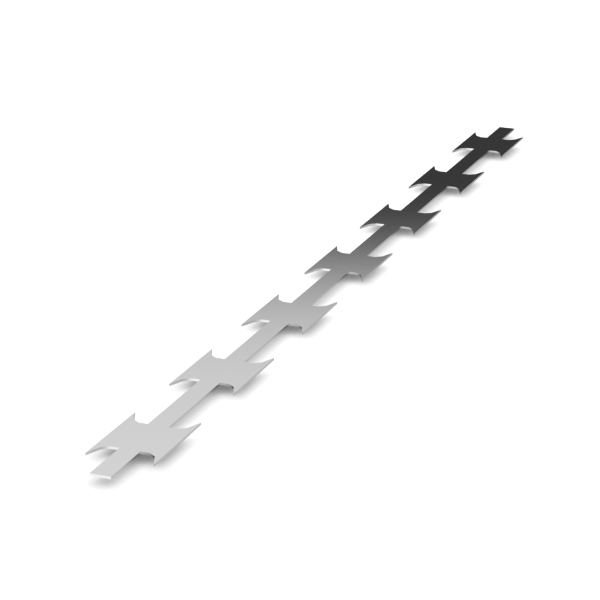 Чтобы многократно увеличить стойкость ленты колючей к разрыву, используется метод армирования стальной канатной проволокой, на которой и крепится непосредственно стальная колючая лента.